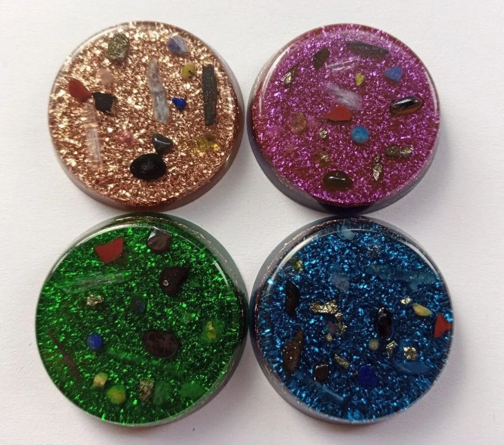 The Orgone Pocket Discs were created as a really low profile way to carry an orgone device with you wherever you go. Measuring 4 1/2 cm by 1/2 cm, they are small enough to fit inside any pocket or purse. They can also be strategically placed in your vehicle, at work, by your computer, under your pillow, or pretty much anywhere you feel could use some orgone. These would make great gifts for your loved ones.